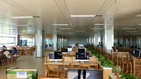 該空間主要是為讀者提供一個(gè)紙質(zhì)圖書(shū)或者自帶筆記本電腦的閱覽區域和上機區域,在閱覽桌上設置相應的電源插座和USB插座等相關(guān)設備。
